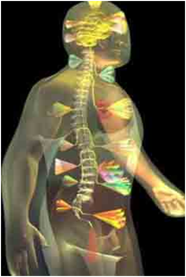 Les chakras ou Centres d'Energiesont situés dans le Corpsd'Energie qui entoure l'être humain appelée " Aura "mais rattachés au Corps Ethérique.